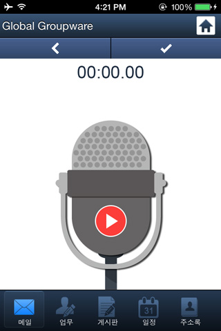 모바일 그룹웨어앱에서 음성 녹음을 하여 첨부로 보내기 가능